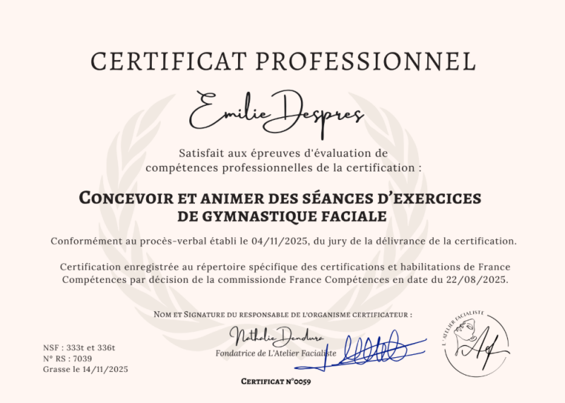 2025 Coach en yoga du visage, L'Atelier facialiste.
