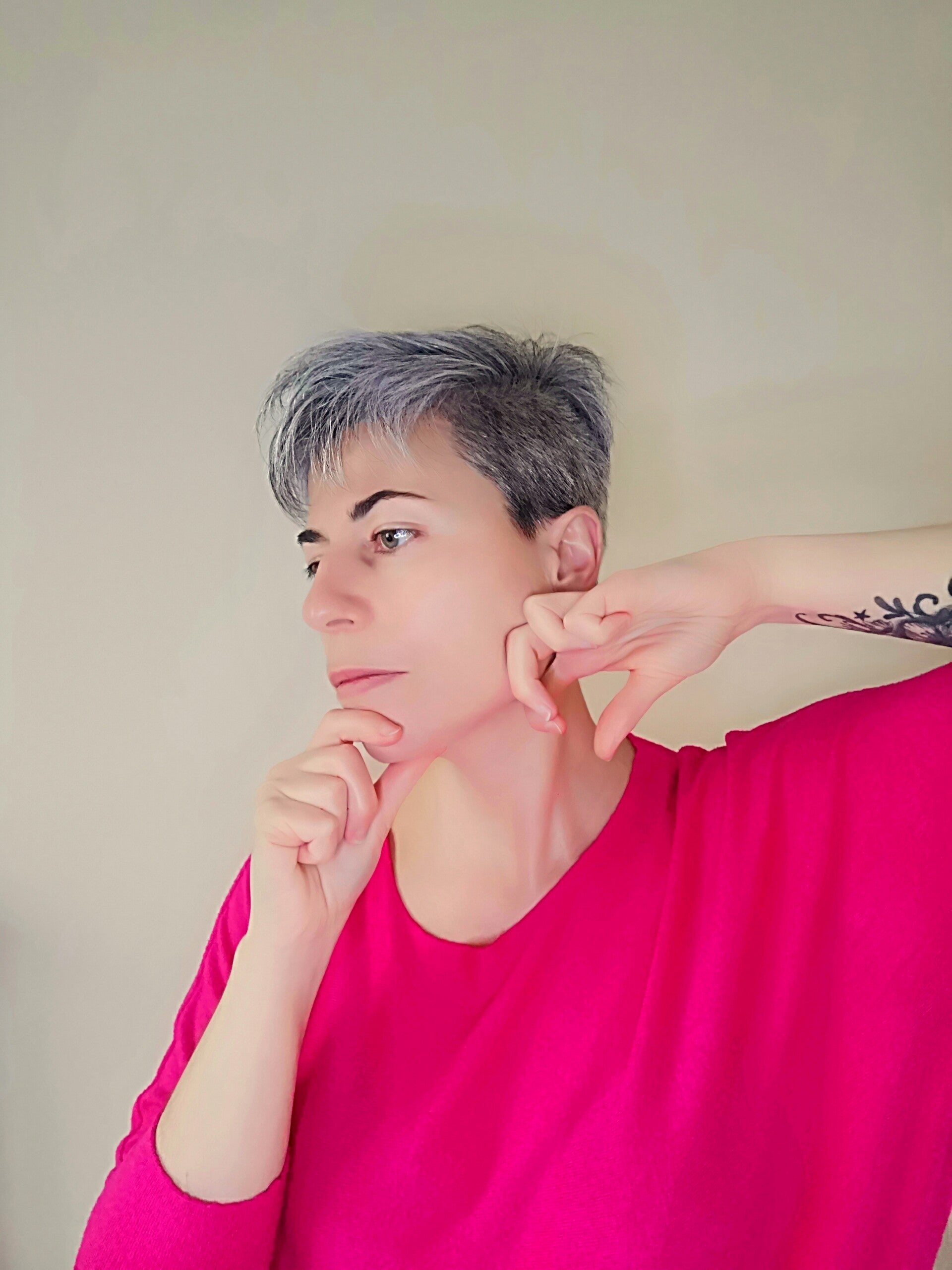 Le yoga du visage aide à relâcher les tensions qui se concentrent sur le front et le crâne, souvent responsables des rides du lion et des rides horizontales. Par des gestes doux et précis, il lisse les traits, détend les muscles et apporte une sensation de légèreté, pour un front plus apaisé